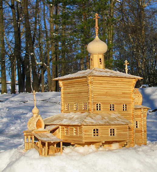 Макет церкви Николая Чудотворца с. Нижний Починок. 1717 г. Кировская область. М 1:50, январь-май 2025 г.